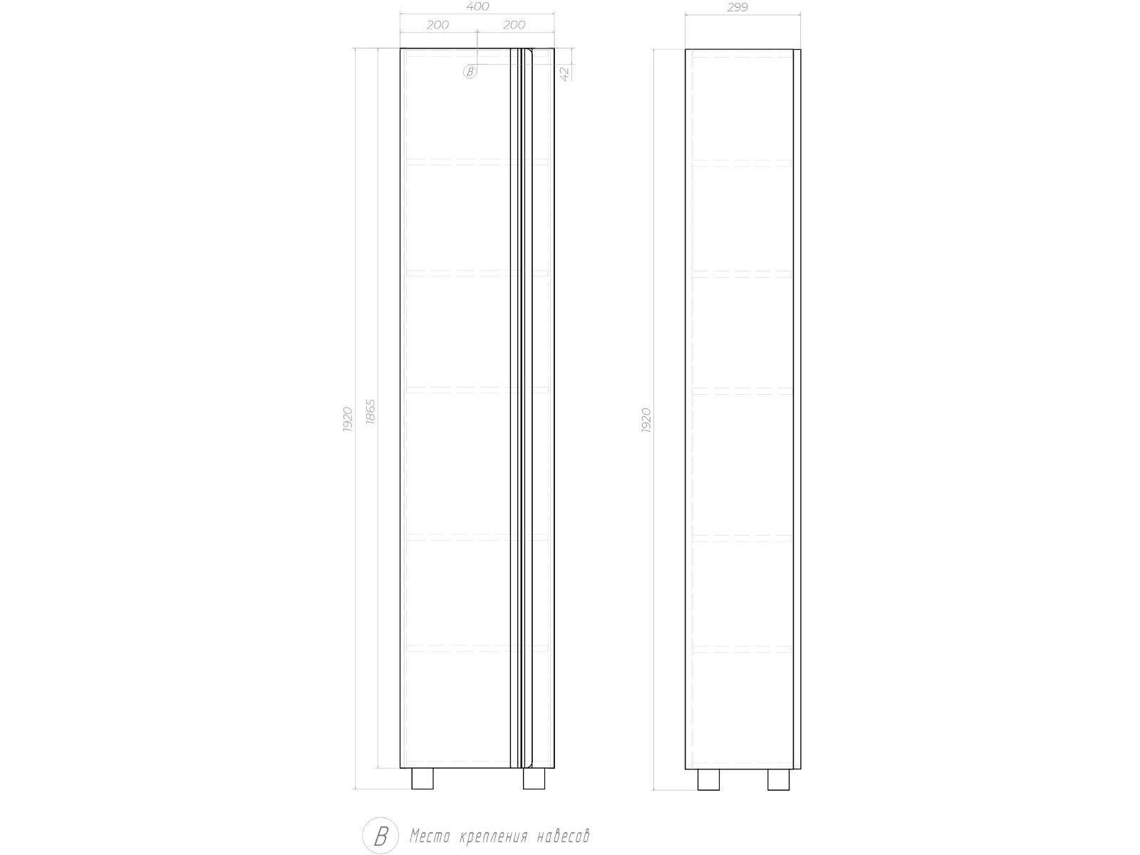 Размер: 400⨉299⨉1920 мм (Ш⨉Г⨉В)