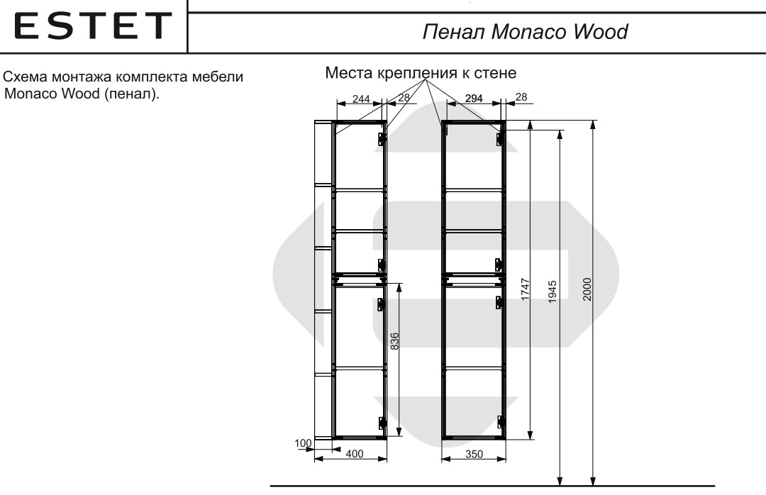 - Пенал подвесной Monaco Wood правосторонний