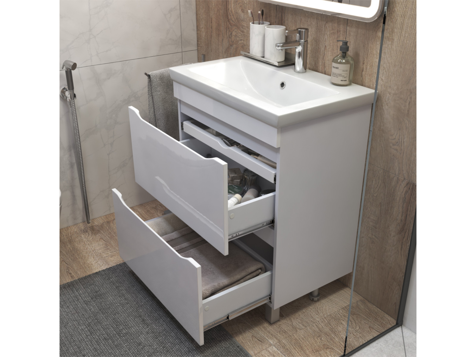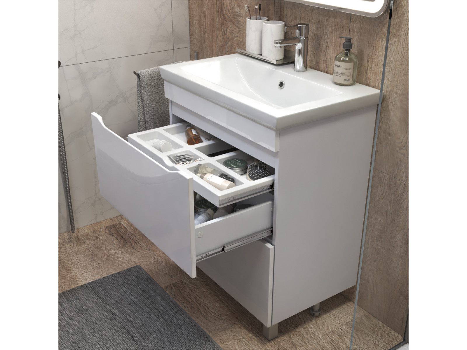 Размер тумбы с раковиной (ШxГxВ): 700x450x850 мм