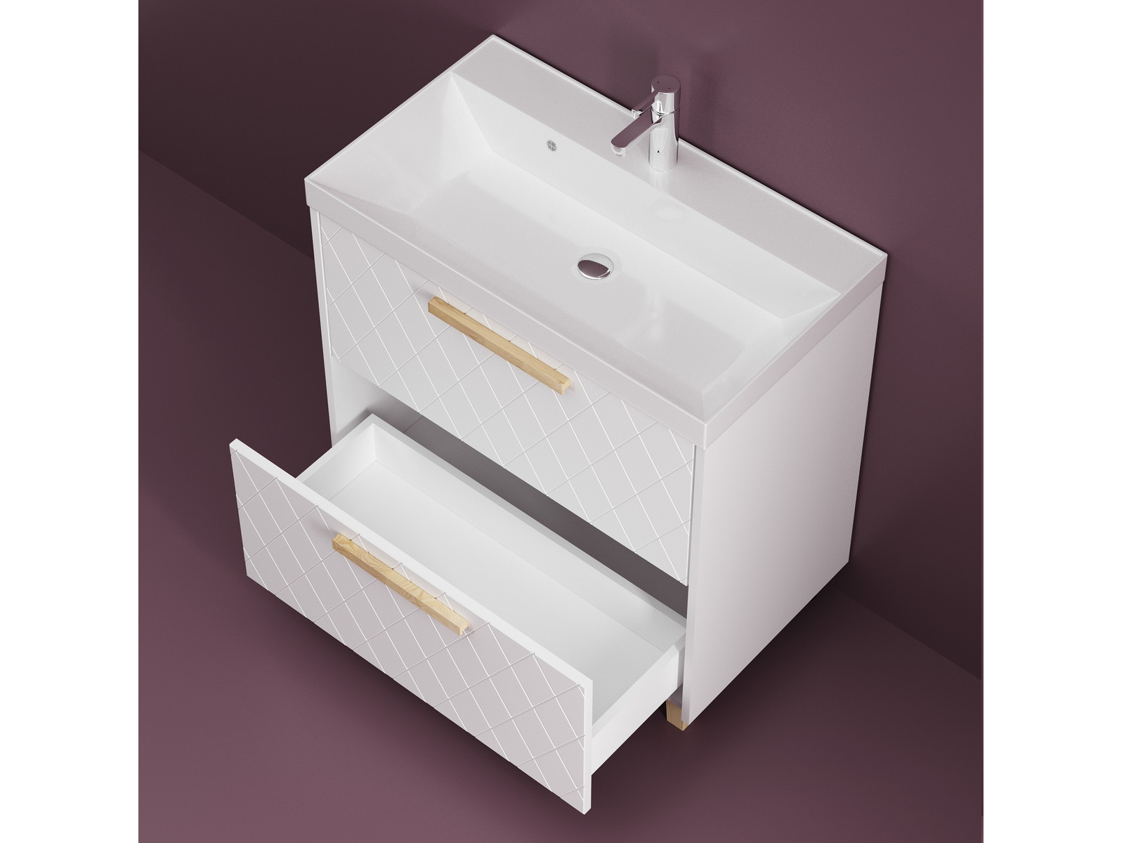 - Тумба Кристалл 80 напольная 2 ящика ручка дуб, раковина Комфорт 80 Суфле
