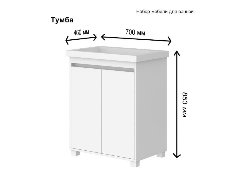 Габариты с учетом размеров раковины: (Д*Ш*В): 700*460*853 мм
