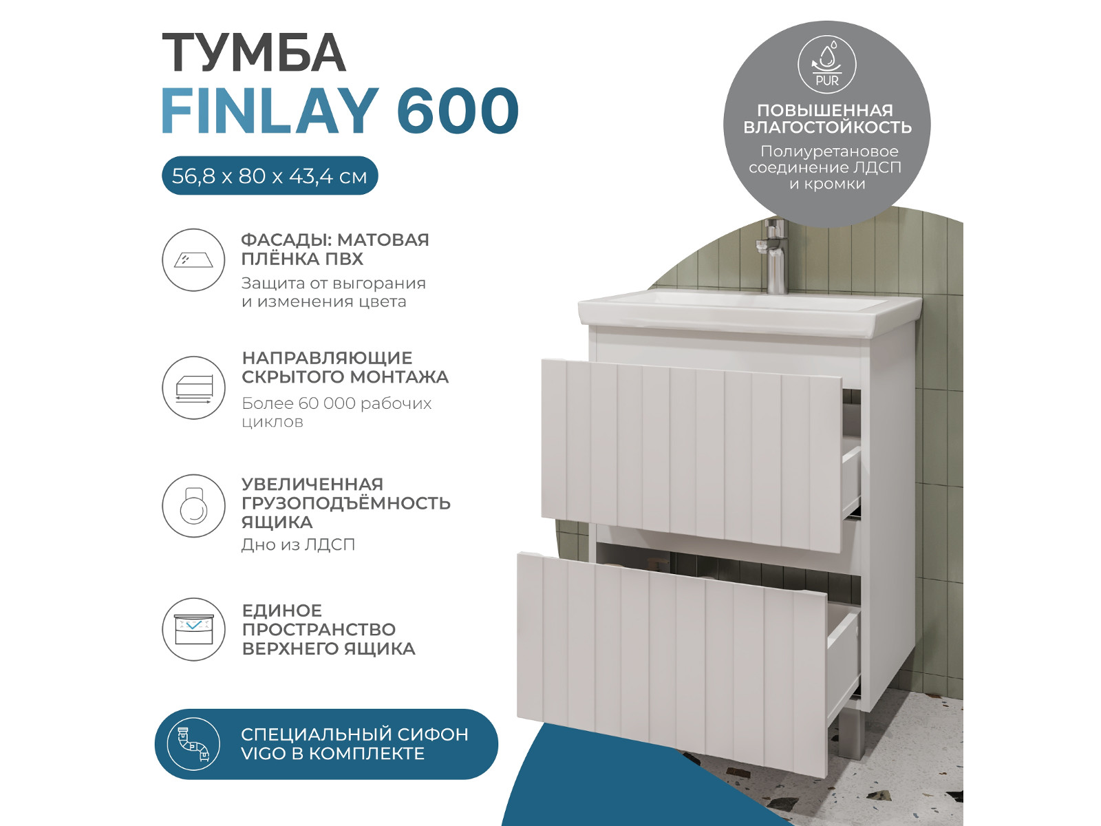 - Тумба под раковину Finlay 600-0-2 (Como)