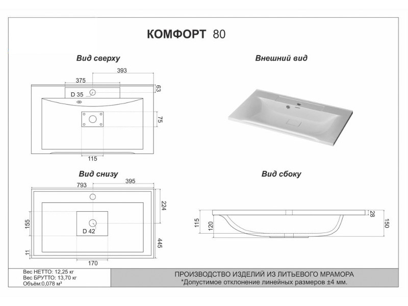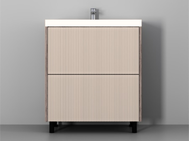 - Тумба Рица 80 напольная 2 ящика раковина Комфорт 80 cерый/керамика