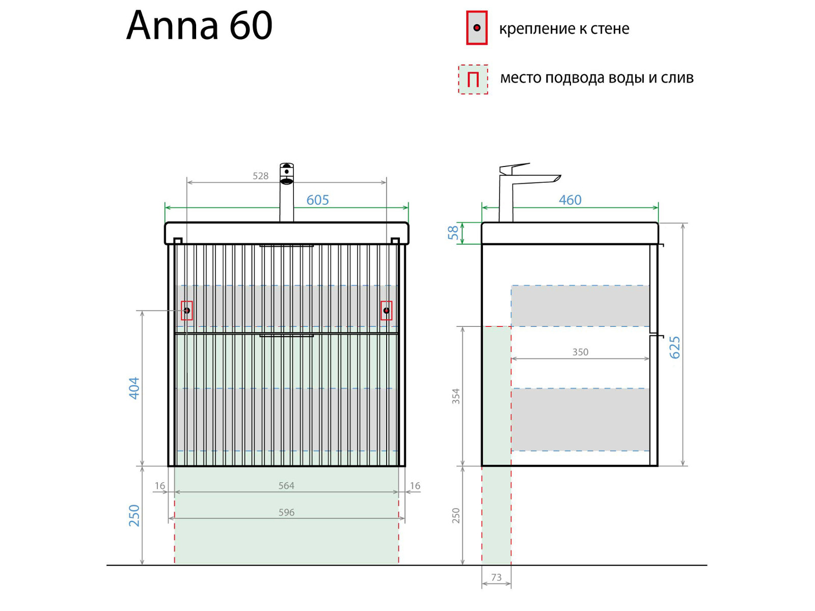 - Тумба с раковиной Anna 60 Умывальник Como 60