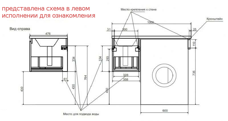 Размер ШхГхВ: 358/1000х476х455 мм