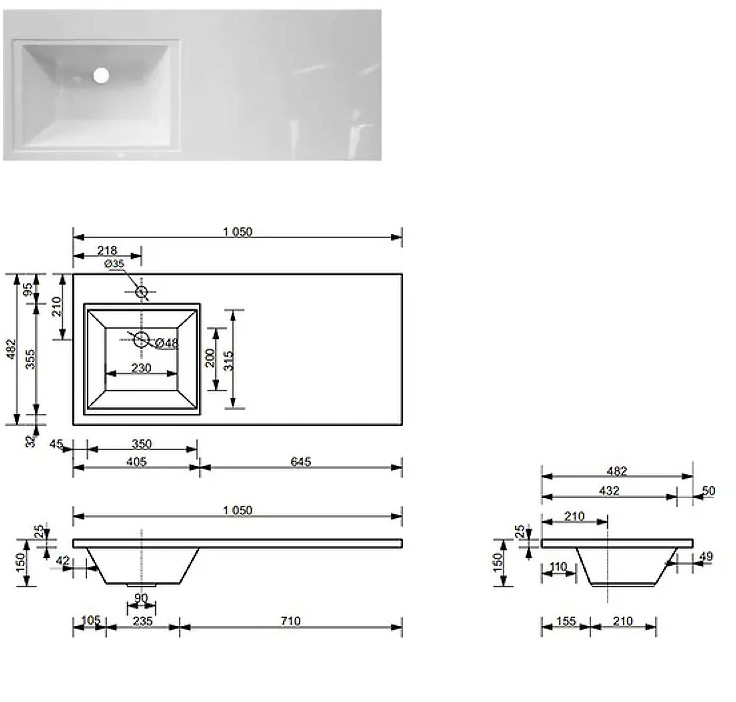 - Тумба с раковиной Dallas Luxe 1050 навесная 1 ящик левая