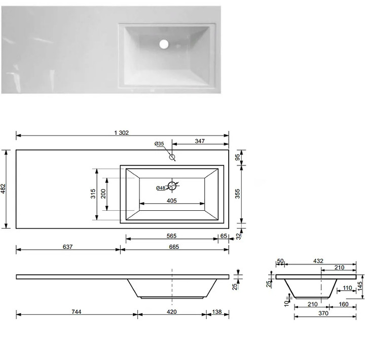 - Тумба с раковиной Dallas Luxe 1300 напольная 2 ящика правая