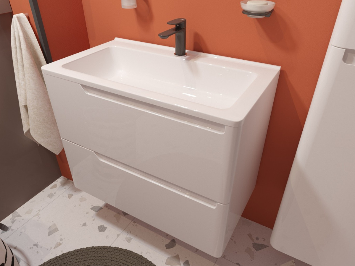 - Тумба с раковиной Kare Luxe 800 навесная 2 ящика