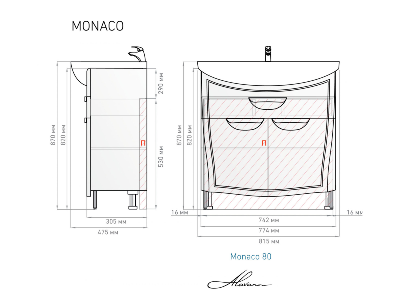 - Тумба с раковиной Monaco 80 белая