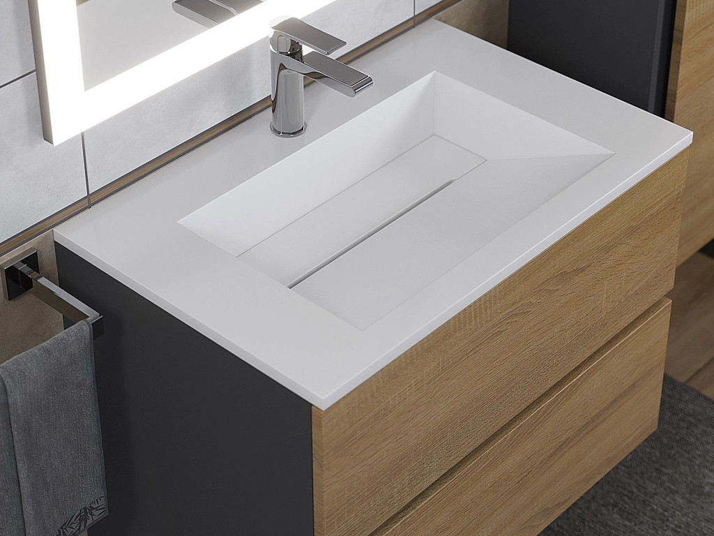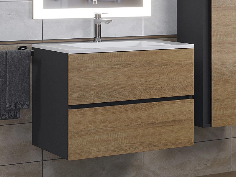 - Тумба с раковиной Uperwood Barsa-Next черная/дуб сонома 70 см