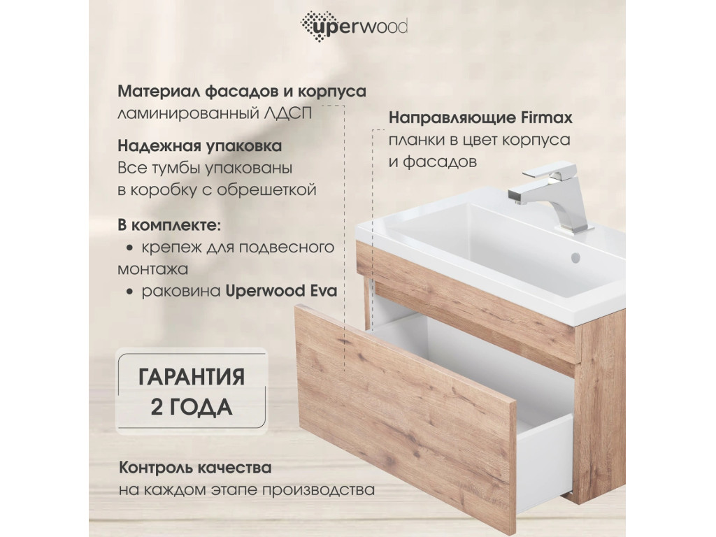 - Тумба с раковиной Uperwood Eva Крафт Табачный 60 см