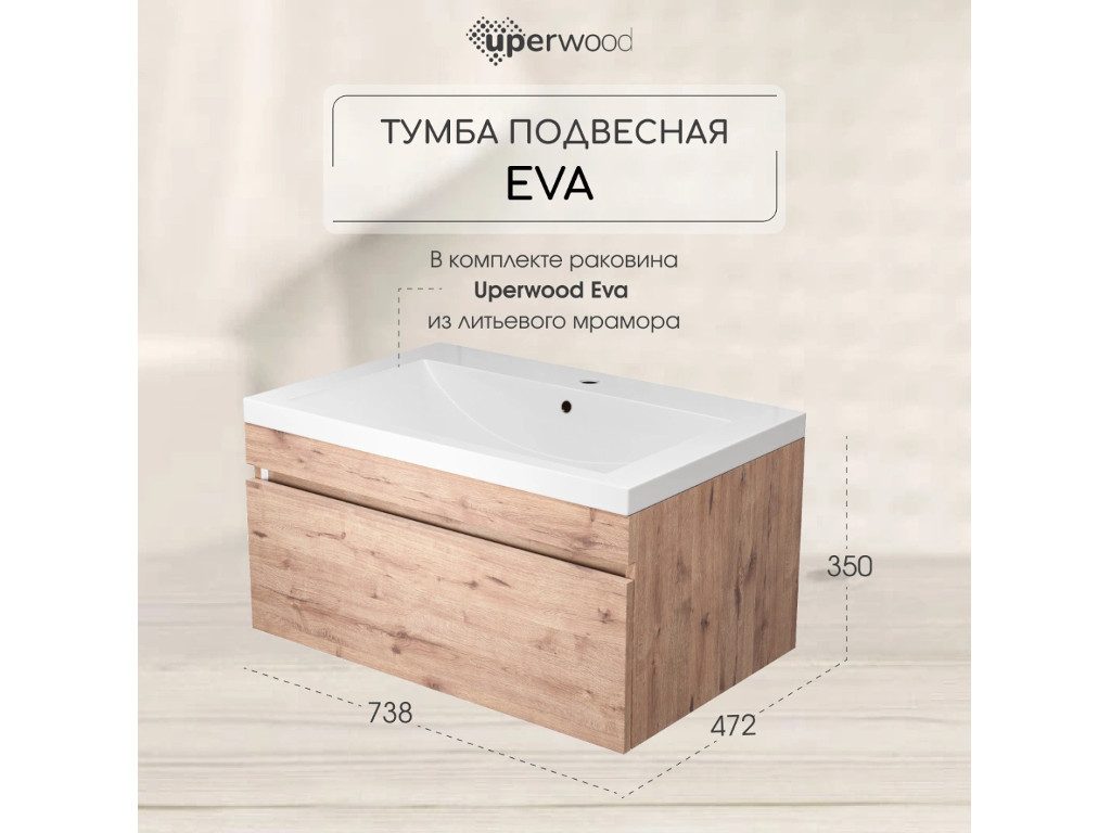 - Тумба с раковиной Uperwood Eva Крафт Табачный 75 см