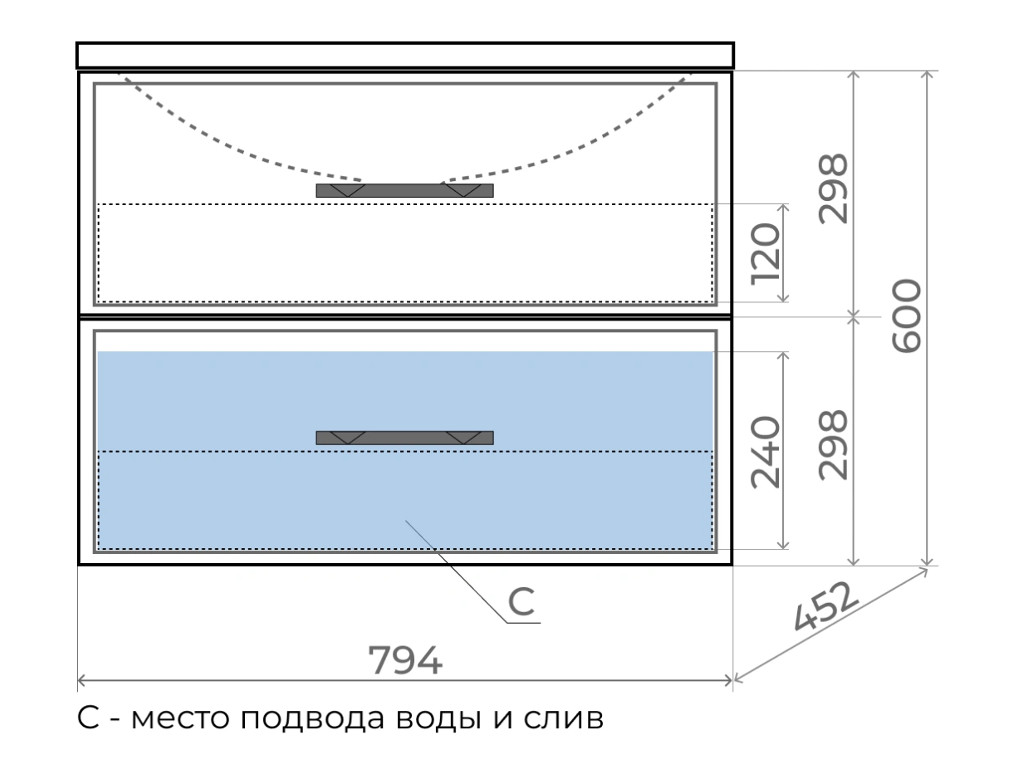 - Выдвижные ящики изготовлены из влагостойкой ЛДСП.