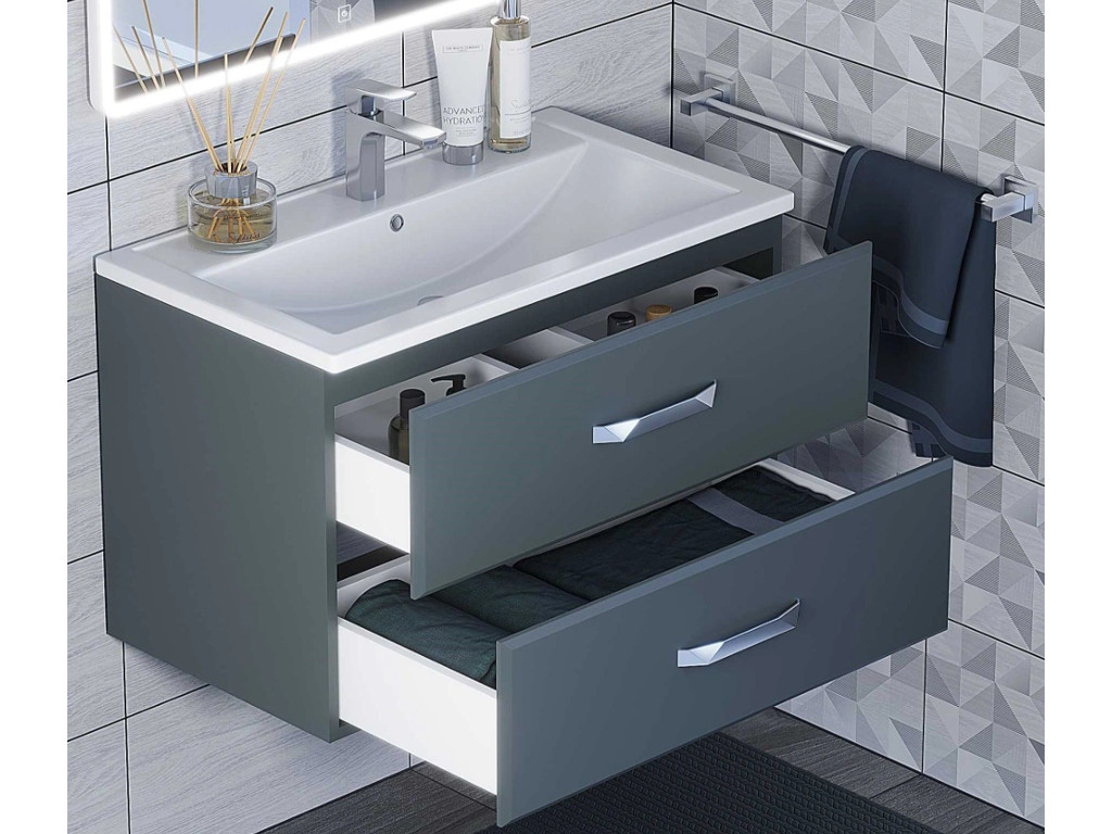 - Тумба с раковиной Uperwood Foster серый графит 80 см