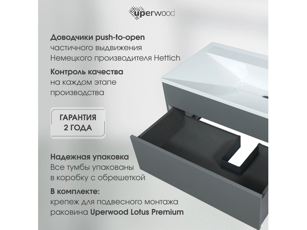 - Тумба с раковиной Uperwood Lotus Premium серая 80 см