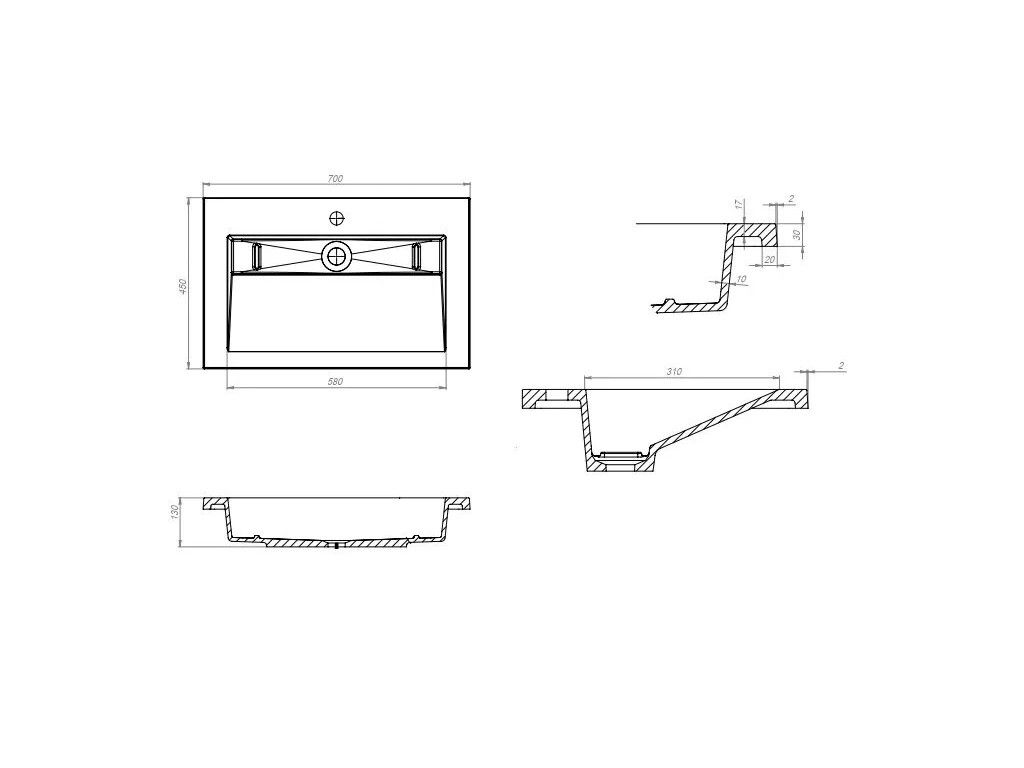 - Тумба с раковиной Uperwood Next Premium белая 2 ящика 70 см