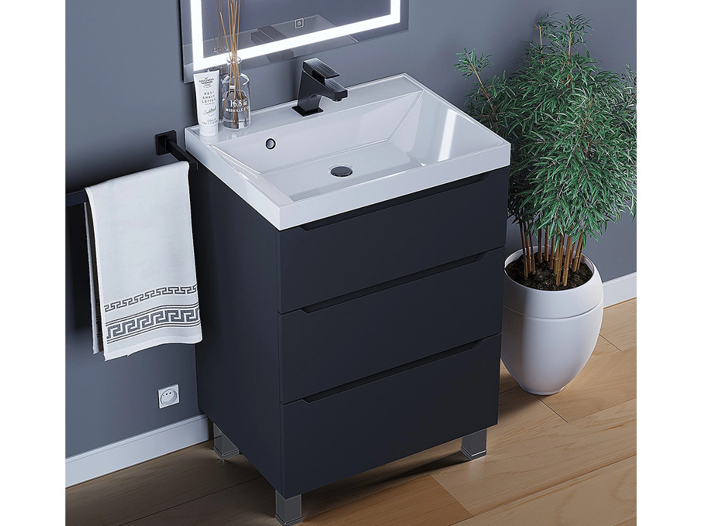 - Тумба с раковиной Uperwood Tanos 3 ящика напольная 60 см черная