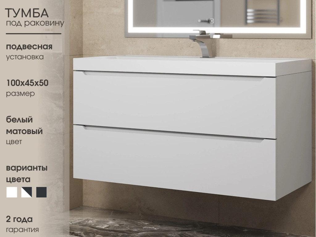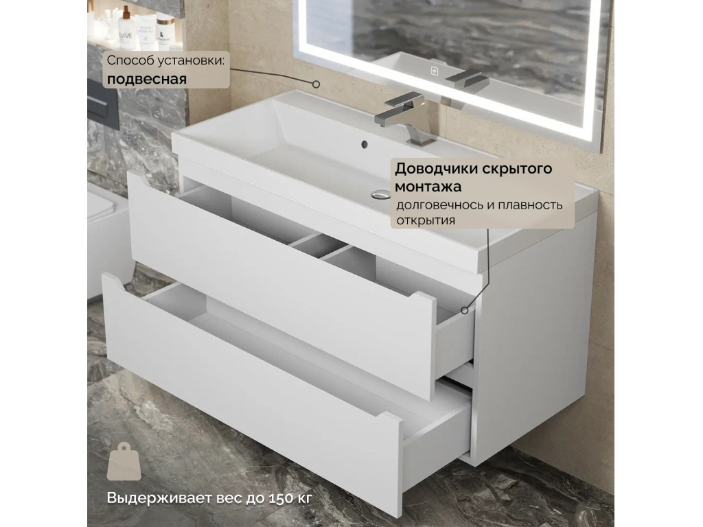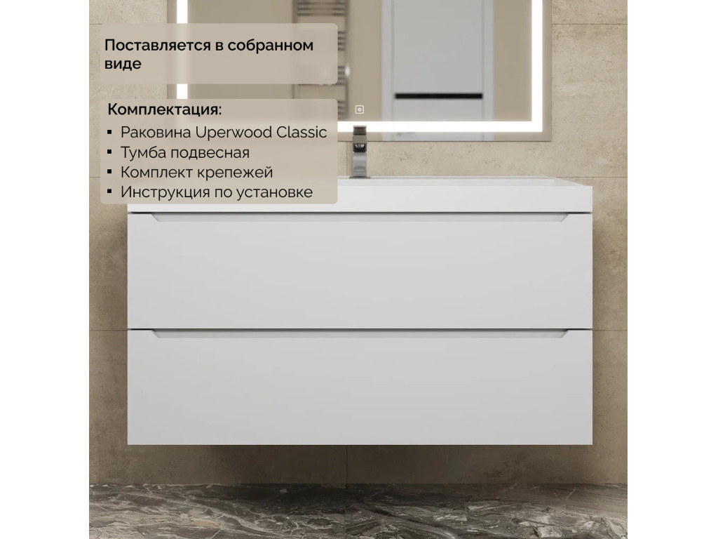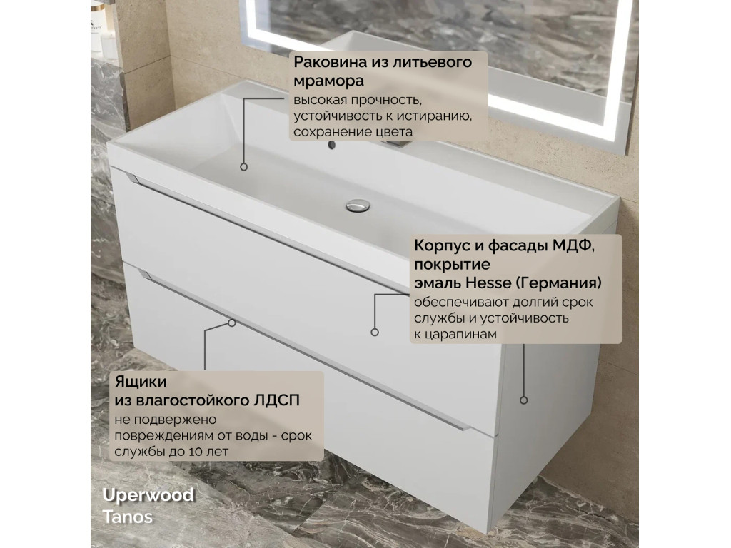 - Тумба с раковиной Uperwood Tanos матовая белая 100 см