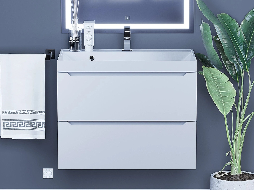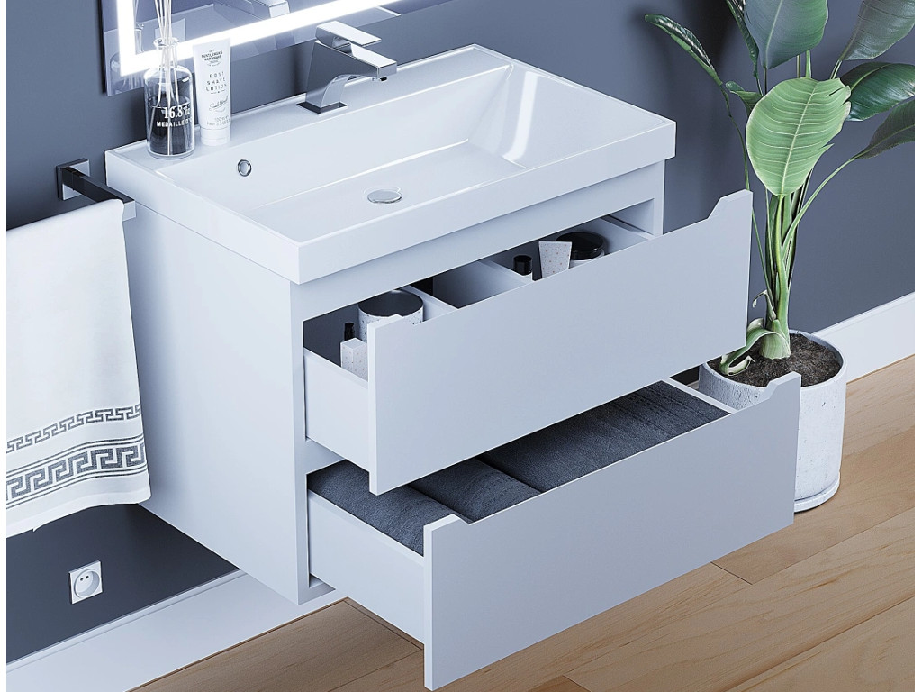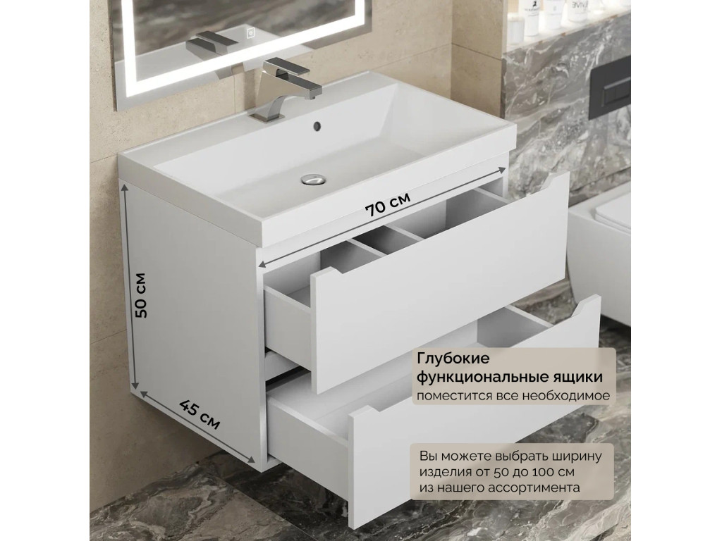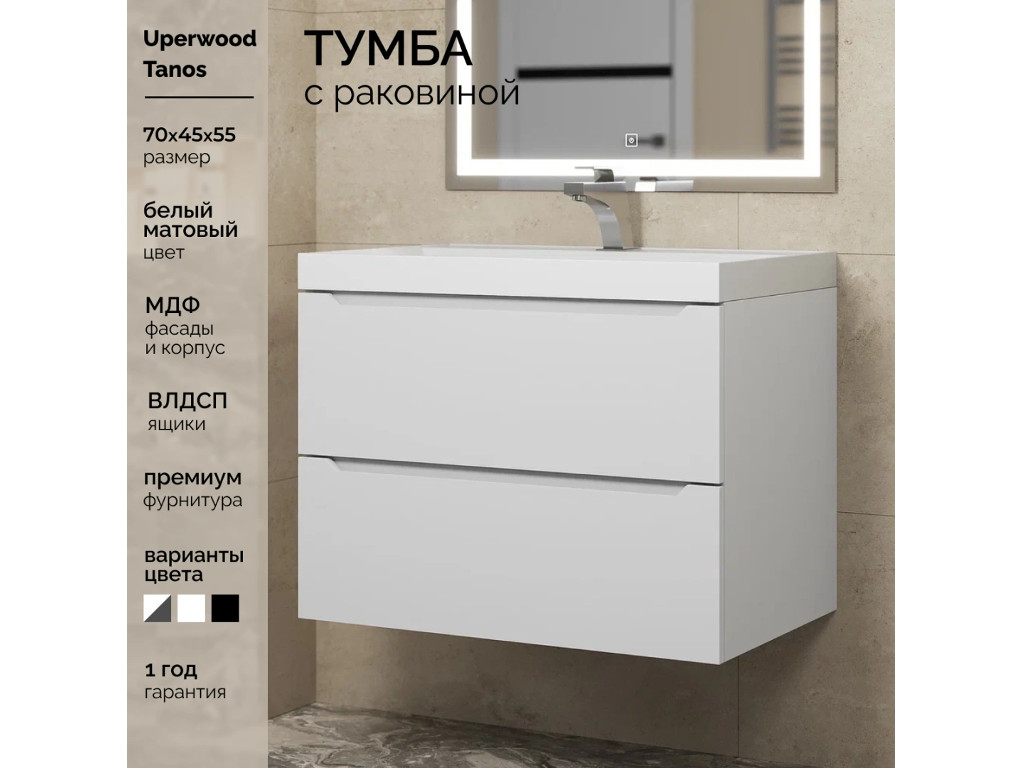 - Тумба с раковиной Uperwood Tanos матовая белая 70 см
