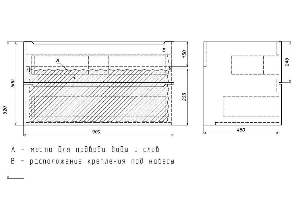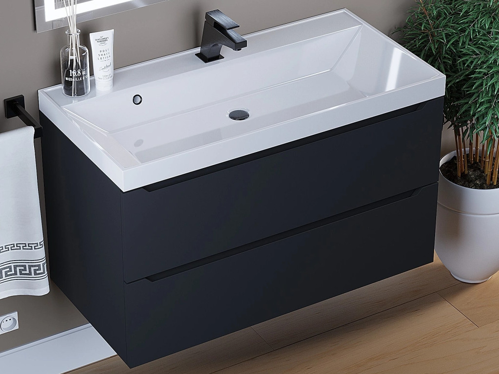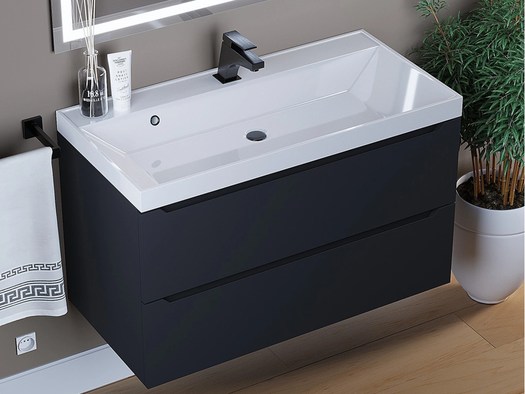 - Тумба с раковиной Uperwood Tanos матовая черная 90 см
