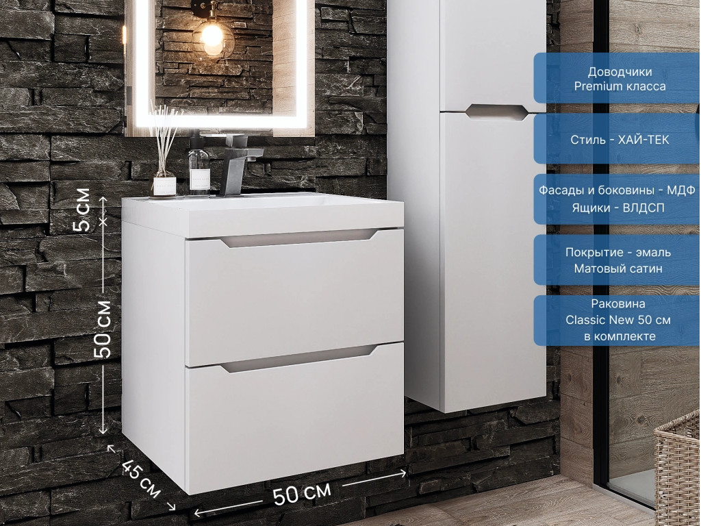 - Тумба с раковиной Uperwood Tanos NEW 50 см белая