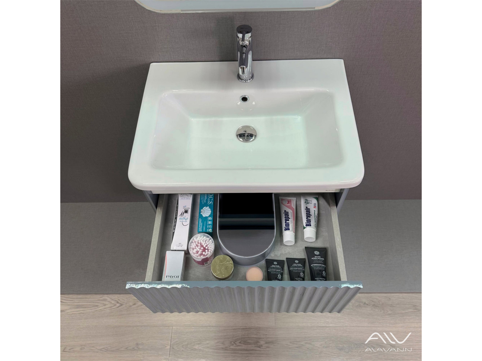 - Тумба с раковиной Wave 60 голубой деним