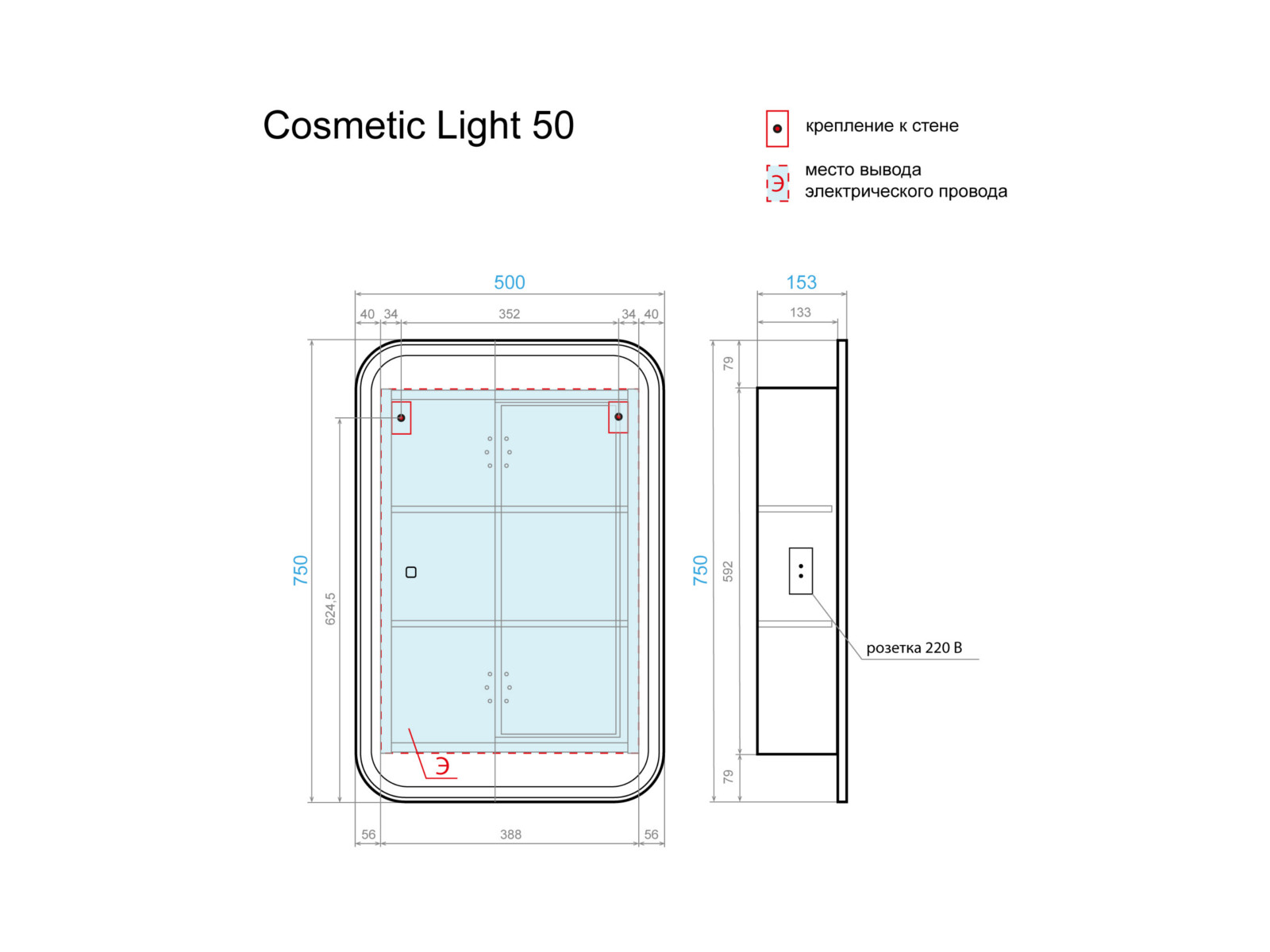 - Зеркальный шкаф Cosmetic Light 50