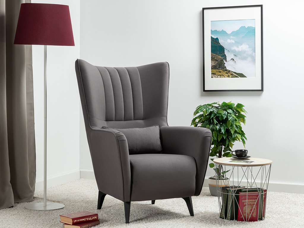 Декор: Вертикальная объемная стежка в средней части спинки; кант на спинке, подлокотниках и декоративной подушке
