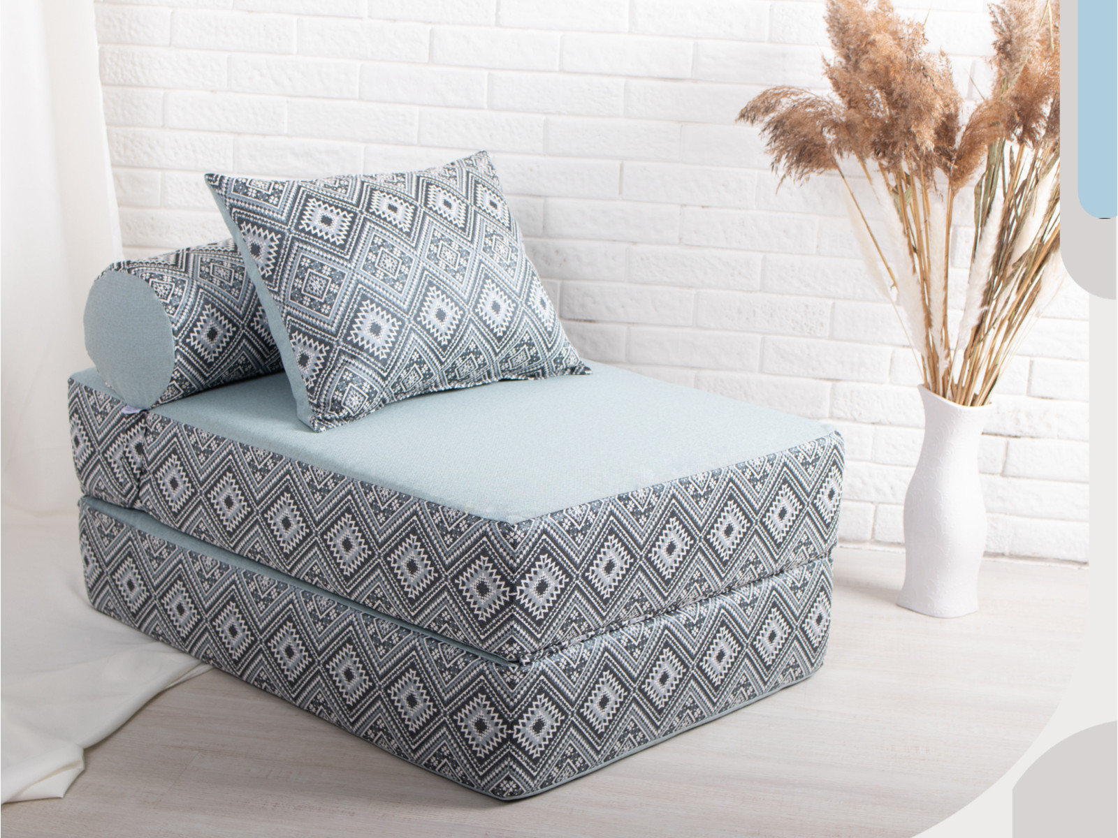 - Кресло-кровать Коста голубой с принтом