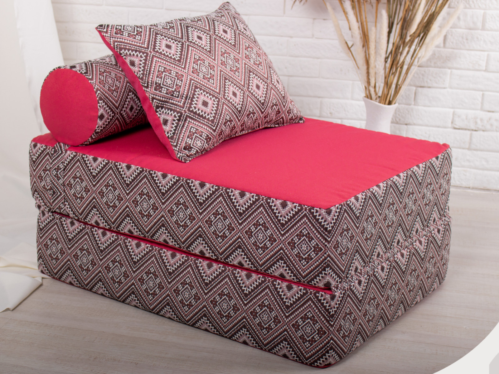 - Кресло-кровать Коста красный с принтом
