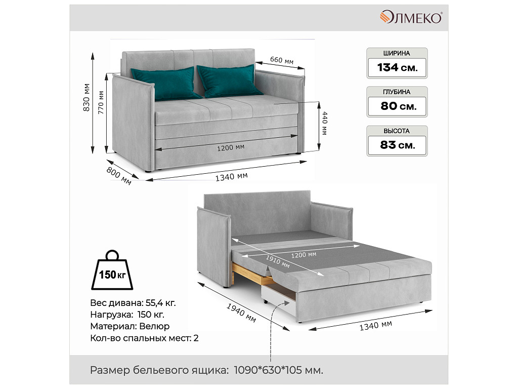 - Диван Дэнди велюр тенерифе грей/велюр тенерифе изумруд