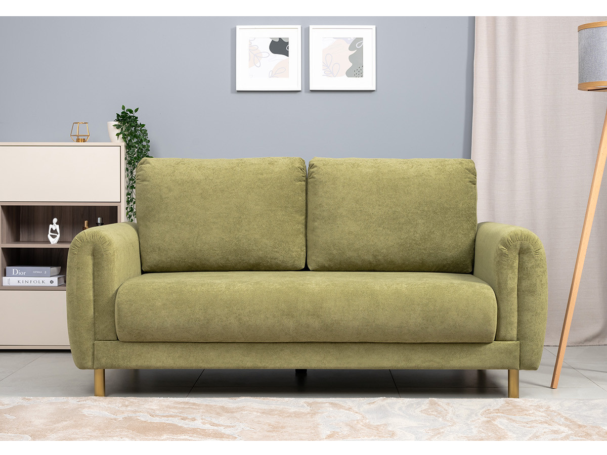 Декоративные утяжки и складки на подлокотниках придают дивану неповторимый шарм, который станет изюминкой любого интерьера — от классического до современного. Приспинные подушки со сборкой в верхней части.