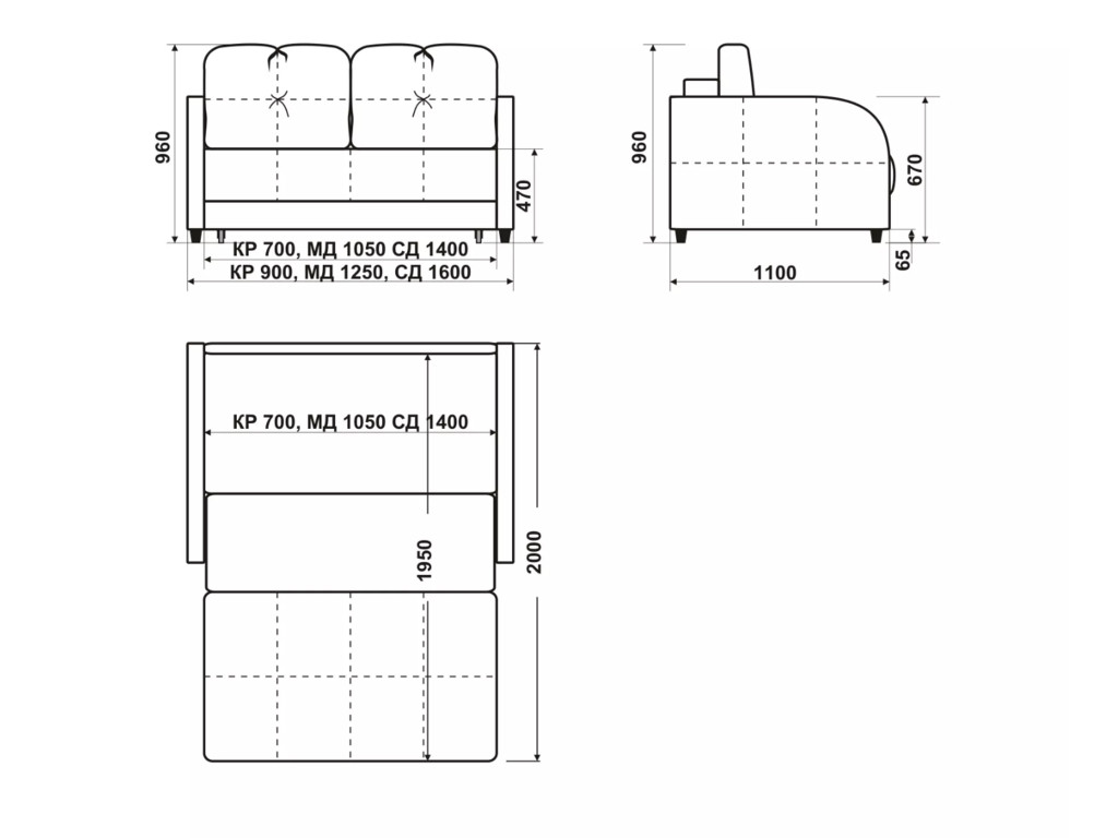 Спальное место (мм): 1050х1950