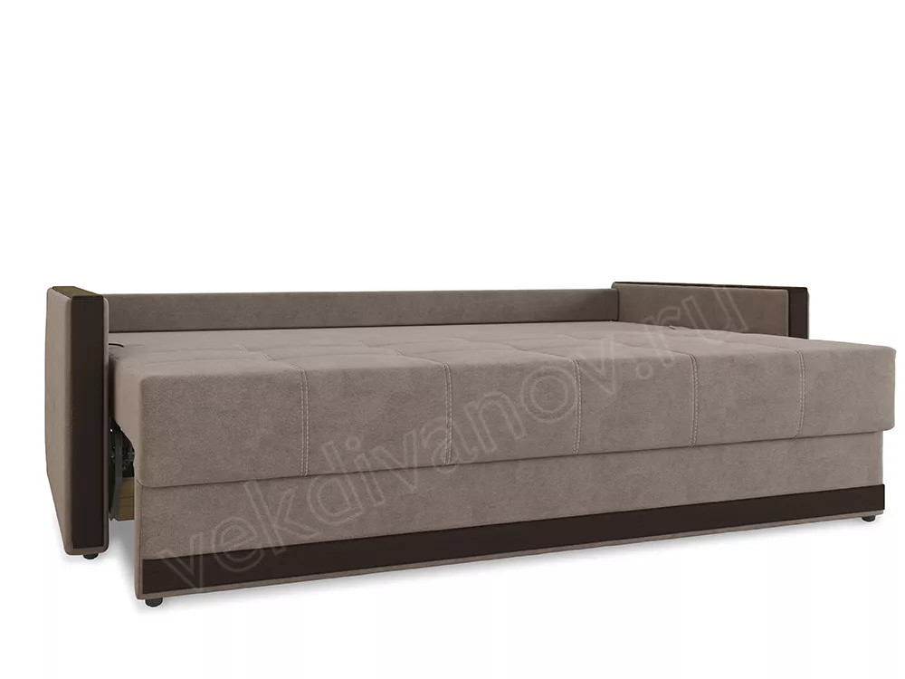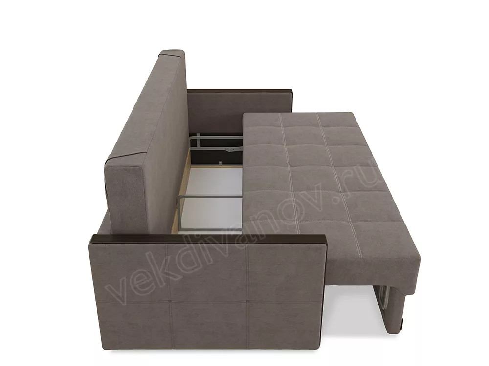 Наполнитель: в основании спального места независимый пружинный блок с дополнительным многослойным покрытием: термовойлок, высокоэластичный пенополиуретан, синтепон; подушки спинки имеют внутренний чехол, наполнитель комбинированный, гипоаллергенный пух «комфорель» с пенополиуретановой крошкой. Накладки – МДФ цвета венге.