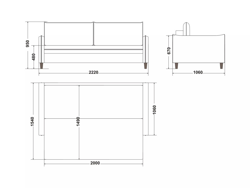 Размеры дивана (мм):  2220*1060*950