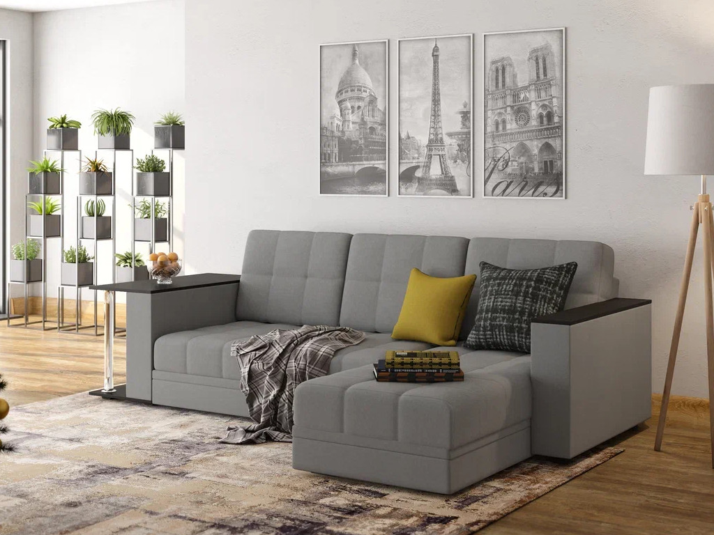 Диван угловой Атлант со столиком велюр Neo 25 грей светло-серый