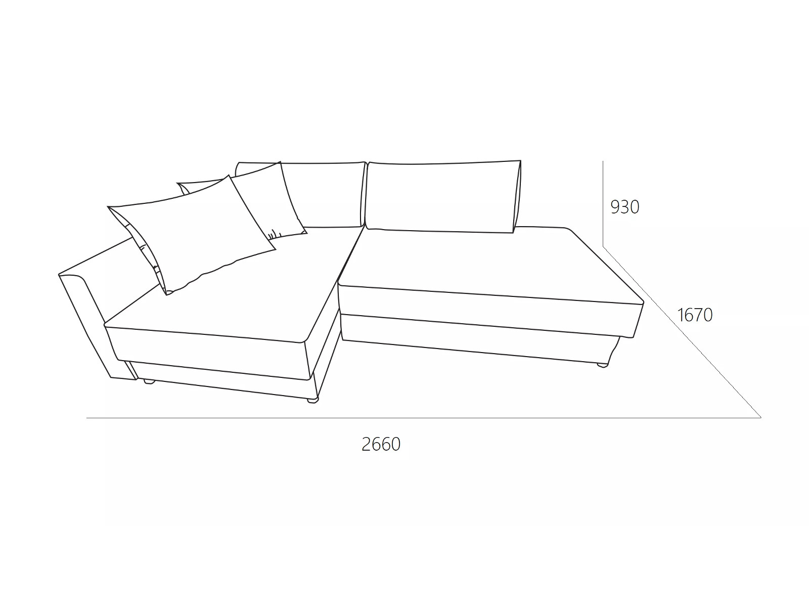 - Габаритные размеры в разложеном виде: 2165 х 1700 х 675