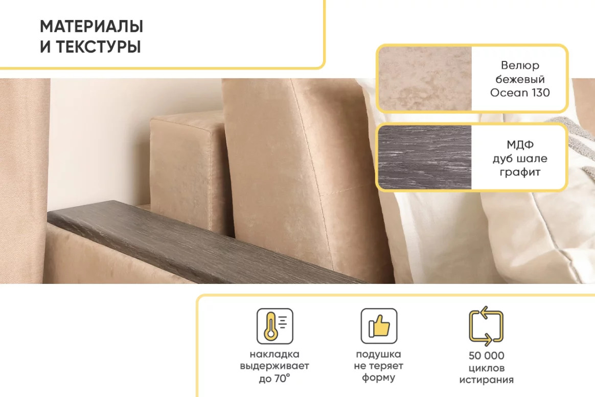 - Диван угловой Тургояк c USB розеткой Бежевый Ocean 130