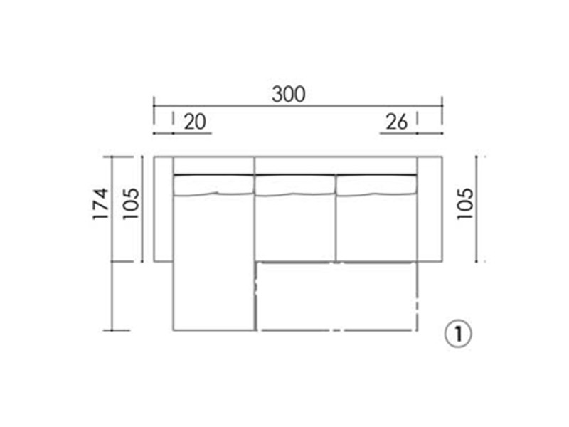 отоманка по глубине 174 см, ширина отоманки 105 см, глубина дивана по подлокотнику 105 см
