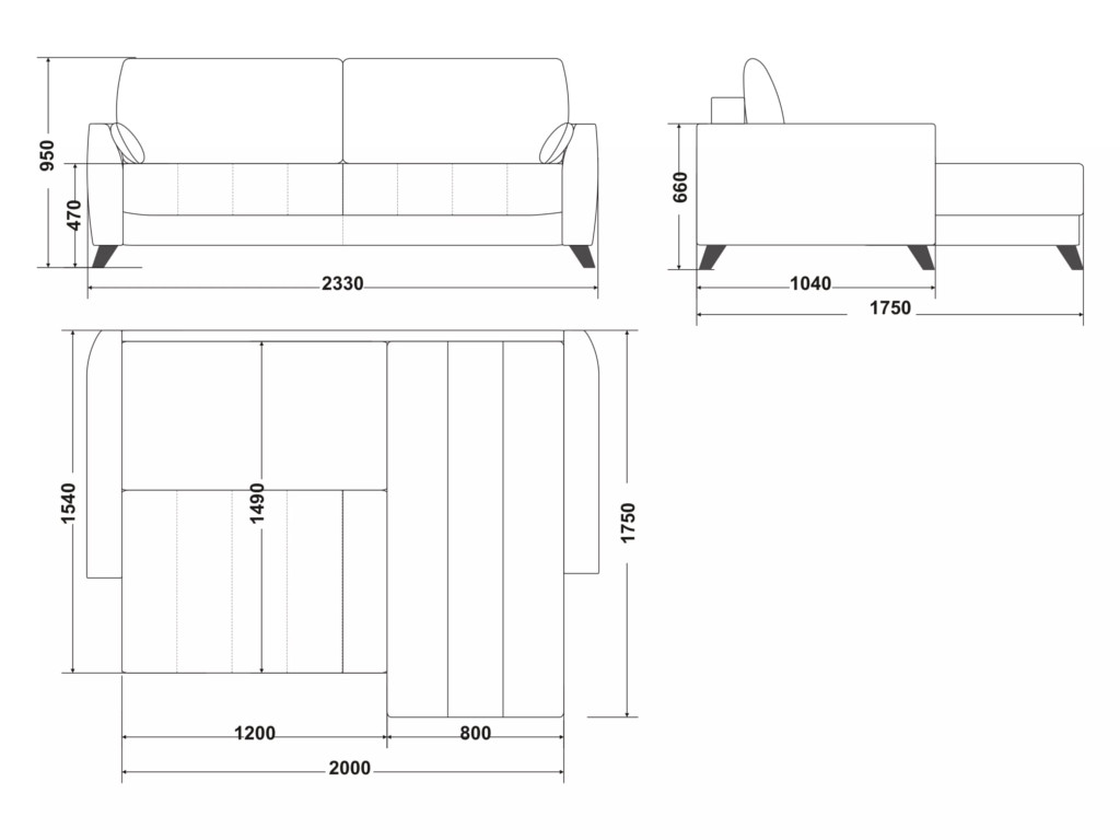 Размеры дивана (мм):  2330*1750*950