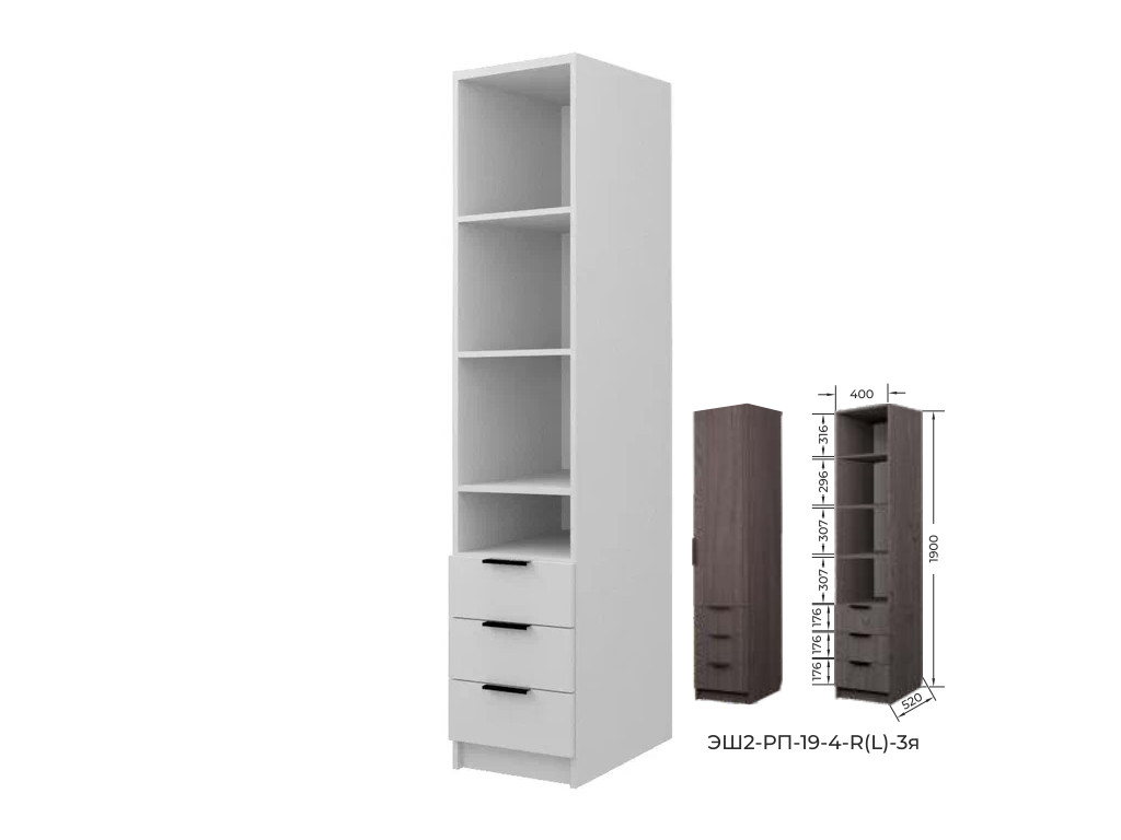 - Артикулы левого и правого шкафа: ЭШ2-РП-19-4-L-2я - левый ЭШ2-РП-19-4-R-2я - правый