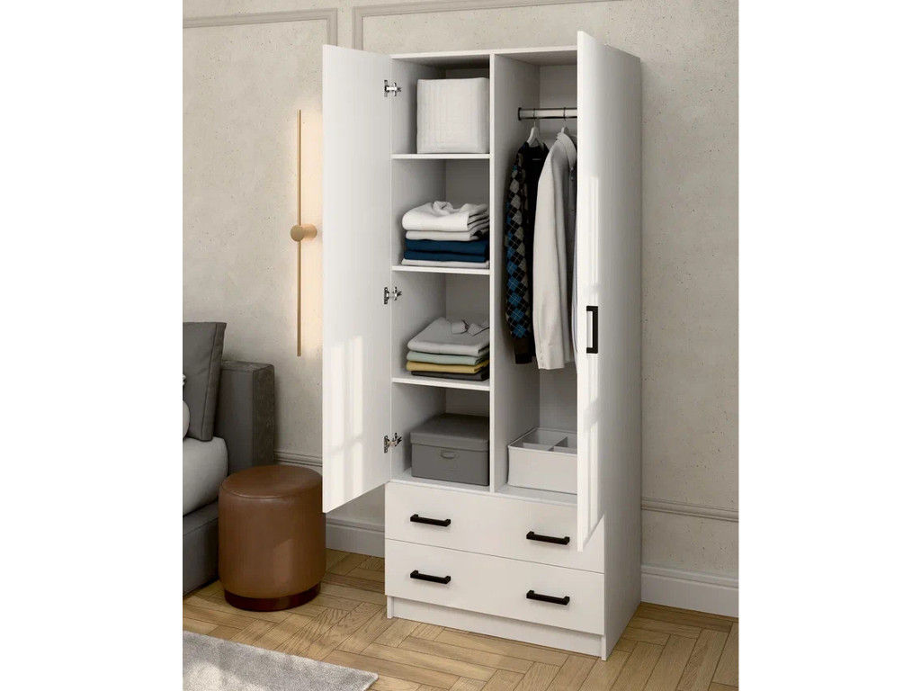 Шкаф 2-хстворчатый с 2-мя ящиками Турин белый