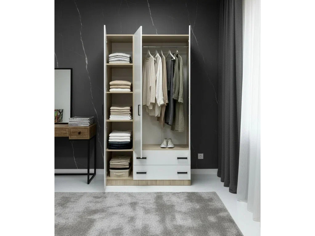 - Шкаф 3-хстворчатый с ящиками Турин белый