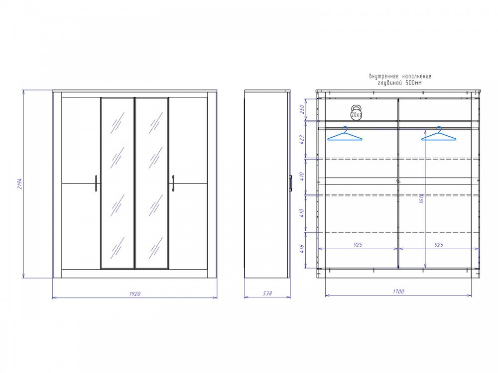 Шкаф 4-х дверный 2194 Денвер Риббек серый