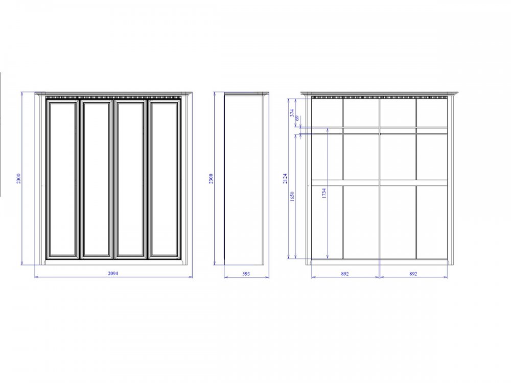 Размер ШхГхВ: 2094*593*2300 мм