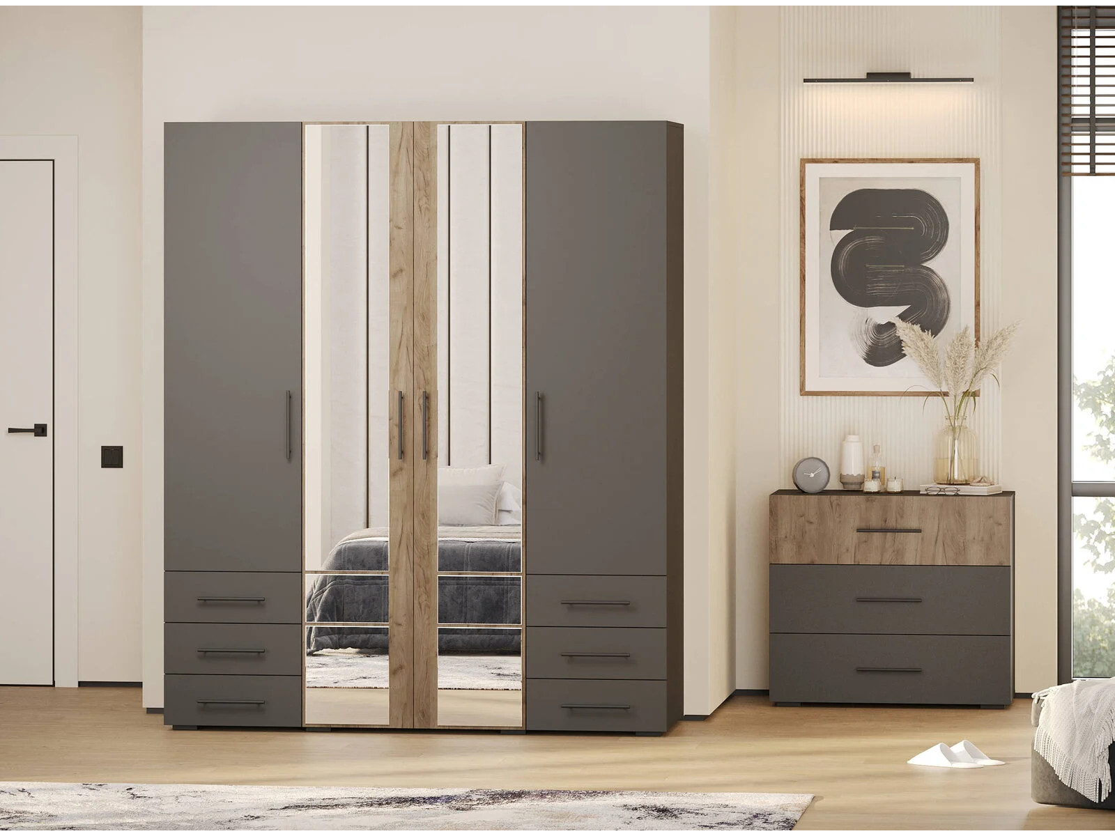 - Шкаф 4-х дверный с шестью ящиками 4-75932