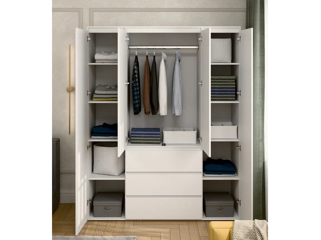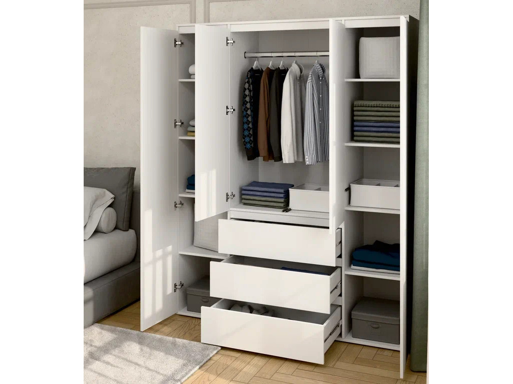 Шкаф 4-хстворчатый с 3-мя ящиками Прайм белый