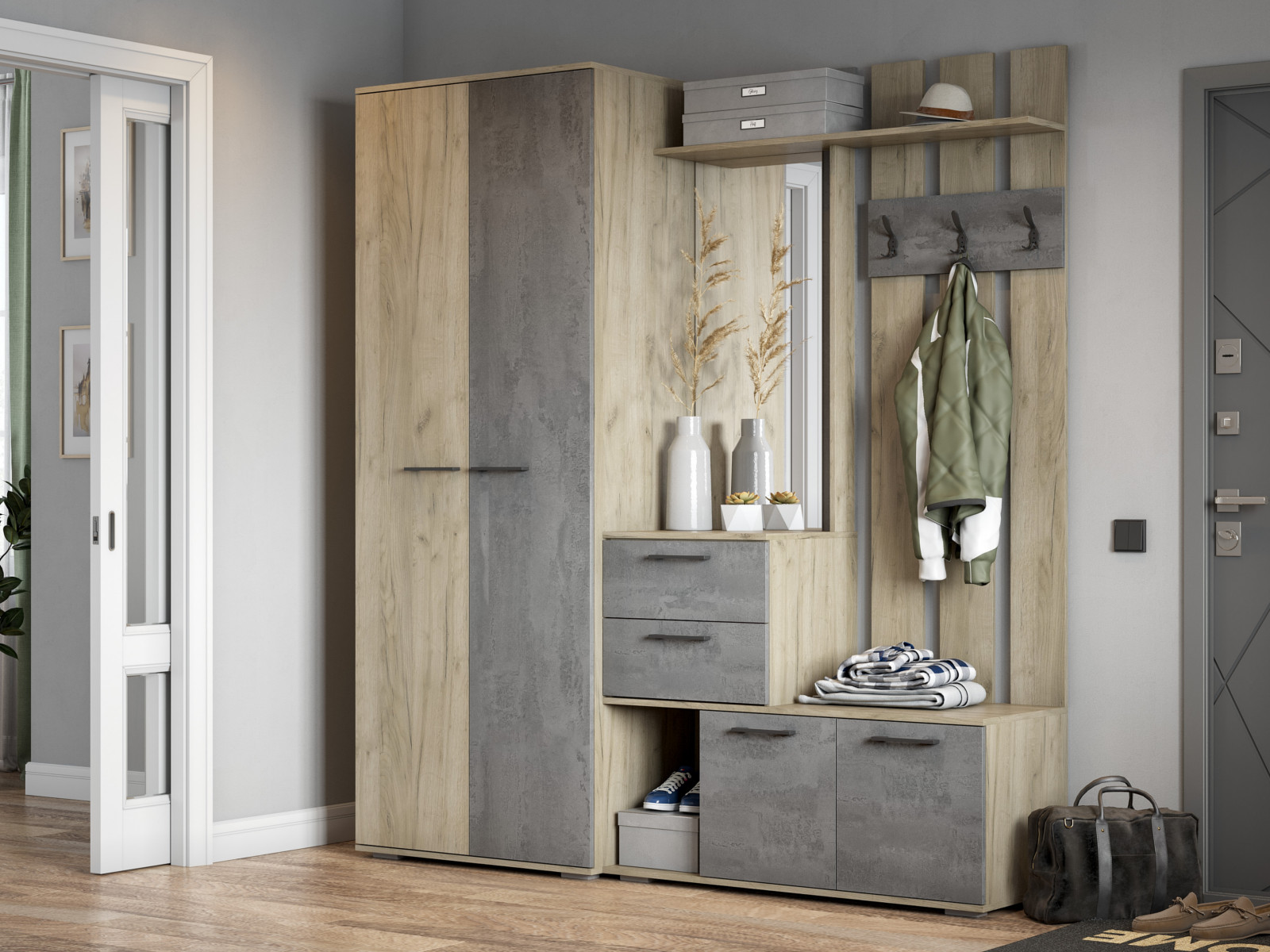 Цвет фасада: Дуб крафт серый, бетонный камень