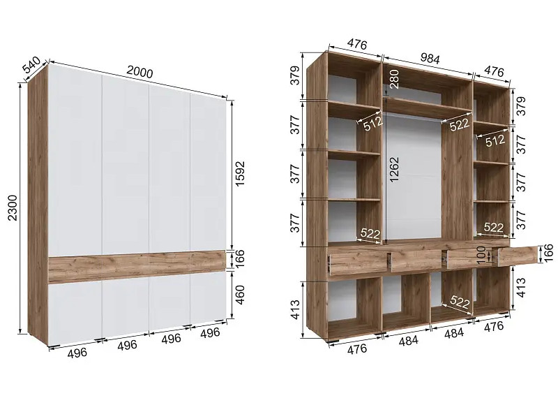 - Шкаф четырехдверный Мерида дуб крафт табачный/белый