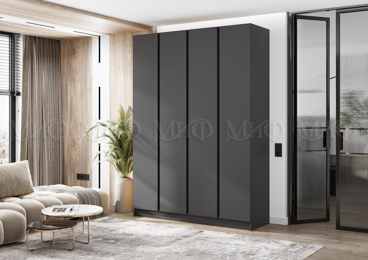 - Шкаф четырехстворчатый Келвин (1600) Графит-вставка черная